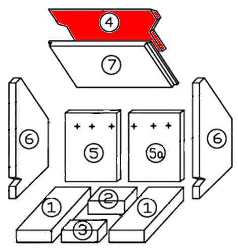 - Üblicherweise ist dieser Brennraumstein Bestandteil der Ausmauerung C, deren markantes Merkmal der gelochte Rückwandstein links (209 x 254 x 25 mm) ist.