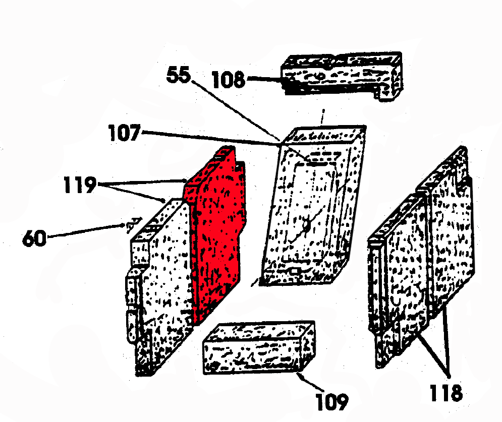 Seitenstein / Brennraumstein / Feuerraumstein / Kaminofenstein / Brennofenstein / Ofenstein / Holzofenstein